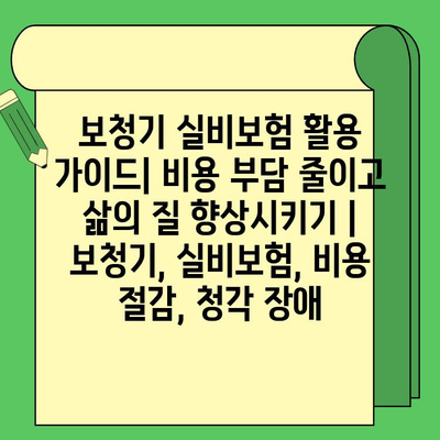 보청기 실비보험 활용 설명서 | 비용 부담 줄이고 삶의 질 향상시키기 | 보청기, 실비보험, 비용 절감, 청각 장애