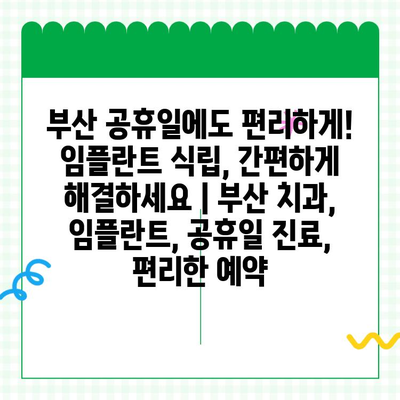 부산 공휴일에도 편리하게! 임플란트 식립, 간편하게 해결하세요 | 부산 치과, 임플란트, 공휴일 진료, 편리한 예약