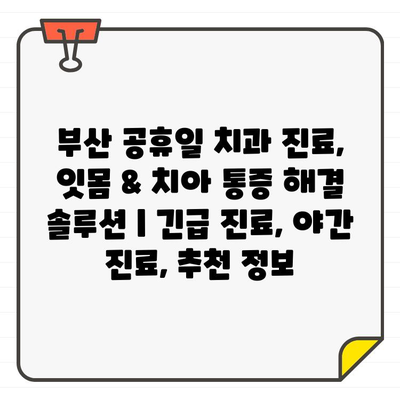 부산 공휴일 치과 진료, 잇몸 & 치아 통증 해결 솔루션 | 긴급 진료, 야간 진료, 추천 정보