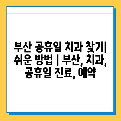 부산 공휴일 치과 진료 정보는 온라인 검색, 병원 홈페이지, 전화 연락 등 다양한 방법으로 확인할 수 있습니다.