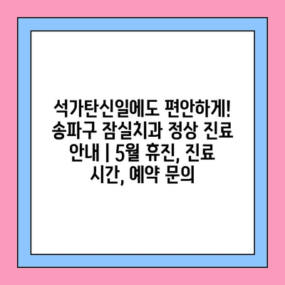 석가탄신일에도 편안하게! 송파구 잠실치과 정상 진료 안내 | 5월 휴진, 진료 시간, 예약 문의