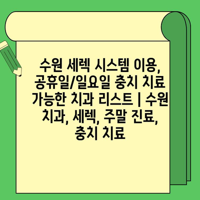이 글에서는 수원 지역에서 세렉 시스템을 이용하여 주말/공휴일에 충치 치료를 제공하는 치과들을 소개합니다.