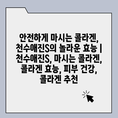 안전하게 마시는 콜라겐, 천수애진S의 놀라운 효능 | 천수애진S, 마시는 콜라겐, 콜라겐 효능, 피부 건강, 콜라겐 추천