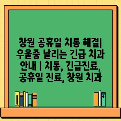 창원 공휴일 치통 해결| 우울증 날리는 긴급 치과 안내 | 치통, 긴급진료, 공휴일 진료, 창원 치과