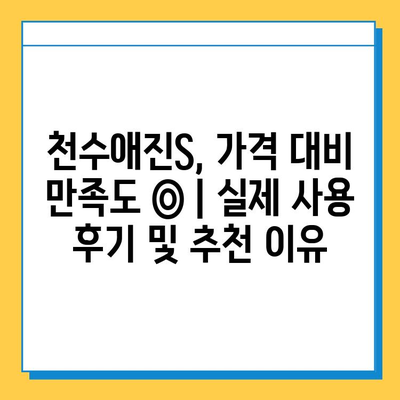 천수애진S, 가격 대비 만족도 ◎ | 실제 사용 후기 및 추천 이유