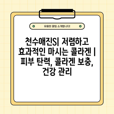 천수애진S는 저렴하고 효과적인 마시는 콜라겐으로, 피부 탄력 증진, 콜라겐 보충, 건강 관리에 도움을 줄 수 있습니다.