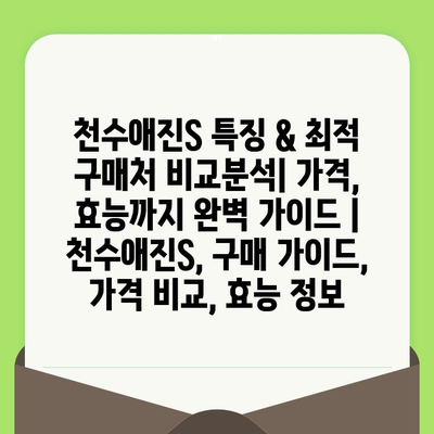 천수애진S 특징 & 최적 구매처 비교분석| 가격, 효능까지 완벽 설명서 | 천수애진S, 구매 설명서, 가격 비교, 효능 정보