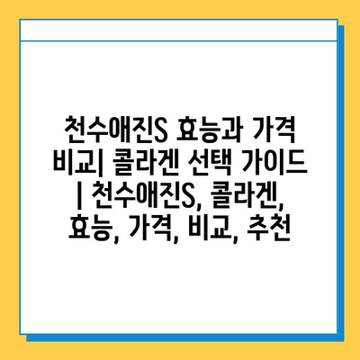 천수애진S 효능과 가격 비교| 콜라겐 선택 설명서 | 천수애진S, 콜라겐, 효능, 가격, 비교, 추천 에 대해 자주 묻는 질문 TOP 5