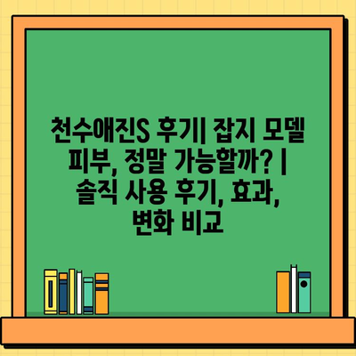 ✅ 천수애진S가 잡지 모델 피부를 만들어줄 수 있을까요? 솔직한 사용 후기와 효과, 변화 비교를 통해 직접 확인해보세요!
