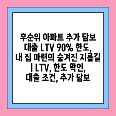 후순위 아파트 추가 담보 대출 LTV 90% 한도, 내 집 마련의 숨겨진 지름길 | LTV, 한도 확인, 대출 조건, 추가 담보