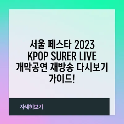 - 외부 스트리밍 서비스: 다시보기를 원한다면, 주요 스트리밍 서비스에서 서울 페스타 2023 또는 KPOP SURER LIVE를 검색해 보세요.