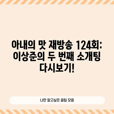 💡 아내의 맛 124회 다시보기를 통해 이상준의 소개팅 순간을 놓치지 마세요. 💡