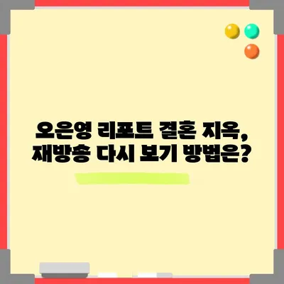 💡 오은영 리포트의 재방송 시청 방법을 지금 바로 알아보세요! 💡