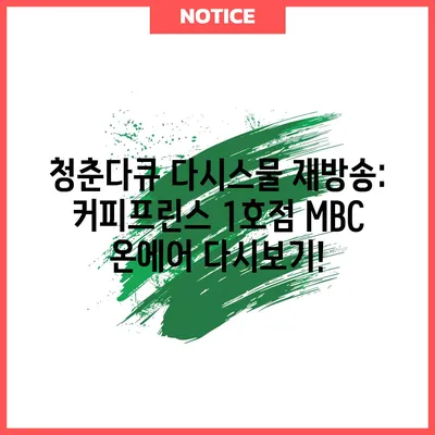 청춘다큐 다시스물 재방송과 커피프린스 1호점 MBC 온에어 다시보기에 대한 모든 정보를 탐구하는 블로그 문서입니다.