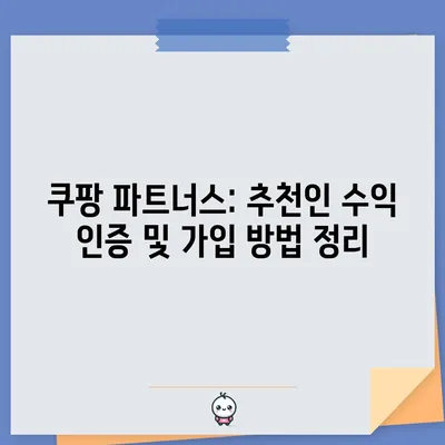 쿠팡 파트너스: 추천인 수익 인증 및 가입 방법 정리