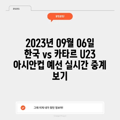 2023년 09월 06일 한국 vs 카타르 U23 아시안컵 예선 실시간 중계 보기