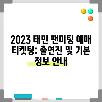 2023 태민 팬미팅 예매 티켓팅: 출연진 및 기본 정보 안내