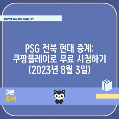 PSG 전북 현대 중계: 쿠팡플레이로 무료 시청하기 (2023년 8월 3일)