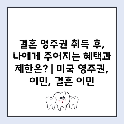 미국에서 배우자를 만나 결혼하고 영주권을 취득하는 건 많은 분들의 꿈입니다. 하지만 결혼 영주권 취득 후에는 어떤 혜택과 제한이 있는지 궁금해하시는 분들이 많을 것입니다. 이 글에서는 결혼 영주권 취득 후 누릴 수 있는 혜택과 함께 주의해야 할 제한 사항들을 자세히 알려제공합니다.