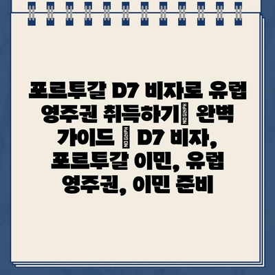 포르투갈 D7 비자로 유럽 영주권 취득하기| 완벽 가이드 | D7 비자, 포르투갈 이민, 유럽 영주권, 이민 준비