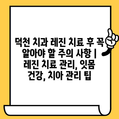 덕천 치과 레진 치료 후 꼭 알아야 할 주의 사항 | 레진 치료 관리, 잇몸 건강, 치아 관리 팁