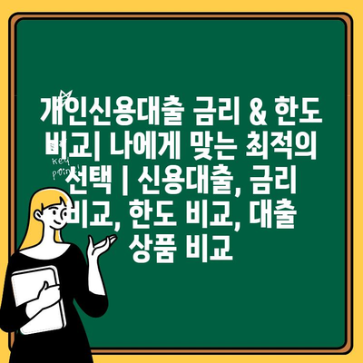 개인신용대출 금리 & 한도 비교| 나에게 맞는 최적의 선택 | 신용대출, 금리 비교, 한도 비교, 대출 상품 비교